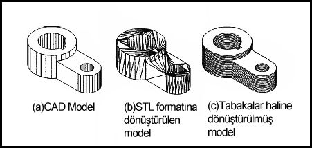 RP süreci beş adımda gerçekleştirilir. Öncelikle ürün modeli bilgisayar ortamında tasarlanılır ya da 3 boyutlu ölçüm cihazlarından temin edilir. İkinci aşamada prototipi üretilecek olan CAD dosya formatı STL’ye çevrilir. STL formatıyla parça yüzeylerinin üçgen yüzeylerle tanımlanması sağlanır. Böylece yüzeydeki her bir üçgenin (x,y,z) koordinatlarının tanımlanması ile yüzeyin basitleştirilmiş hali RP yazılımına aktarılır. Yüzey kalitesini düşüren bu işlemden sonra ek yazılımlar ile yüzey kalitesi artırılabilir. Dördüncü işlemde uygun yöntem seçilerek(FDM, SLS gibi) parça imal edilir. Son aşamada prototip üzerinde gerekli değişiklikler uygulanır.