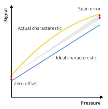Doğruluk genellikle karakteristik eğrinin ideal çizgiden sapması olarak tanımlanır. Basınç sensörlerinin doğruluğu farklı şekilde tanımlanır. IEC 61298-2, doğruluğun Histerezis, Tekrarlanamazlık ve Doğrusal Olmayanlığı içermesi gerektiğini belirtir. Toplam ölçüm hatasını belirlemek için diğer sapmalar da dikkate alınır. Bu ölçüm hataları normalde aralığın yüzdesi olarak tanımlanır (örn. açıklığın ± %1’i). Açıklık, minimum ve maksimum sinyal değeri arasındaki fark olarak tanımlanır. Örneğin, 4-20 mA sinyal aralığı 16 mA’dır.